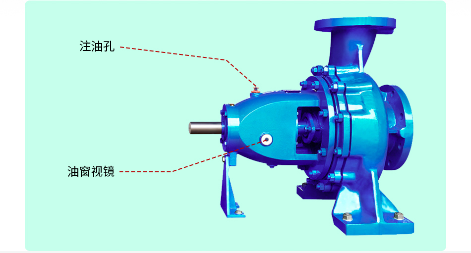 IS泵為機油潤滑,注窗視鏡可觀察加入的油量,檢修時,只需拆下加長聯軸器的中間鏈接件即可。 |